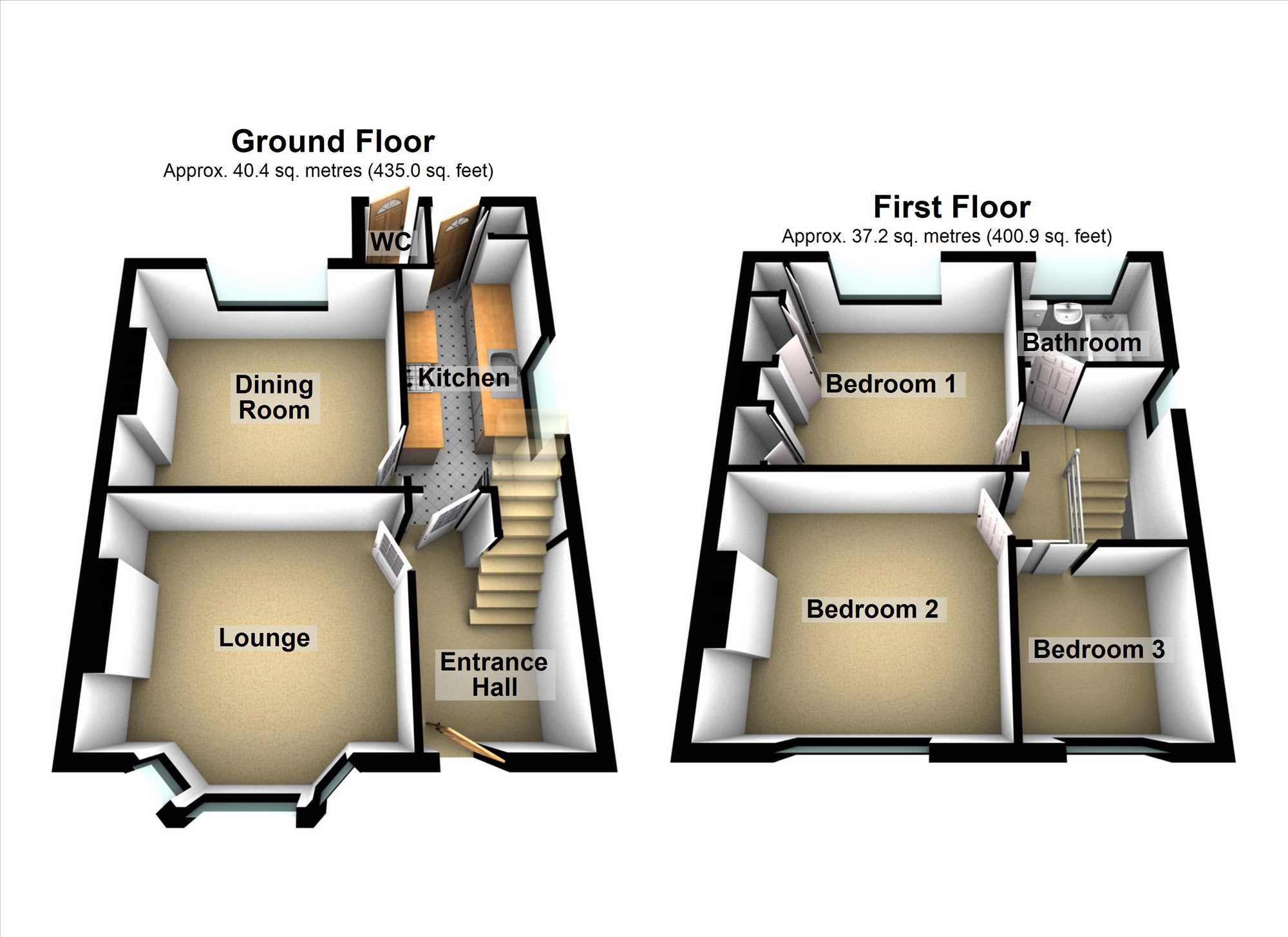 This imposing, traditional semi home has a lounge, sitting/dining room, a fitted kitchen in a light oak style, three good-sized bedrooms, two with fitted wardrobes, and a three-piece family bathroom with electric shower (not tested).