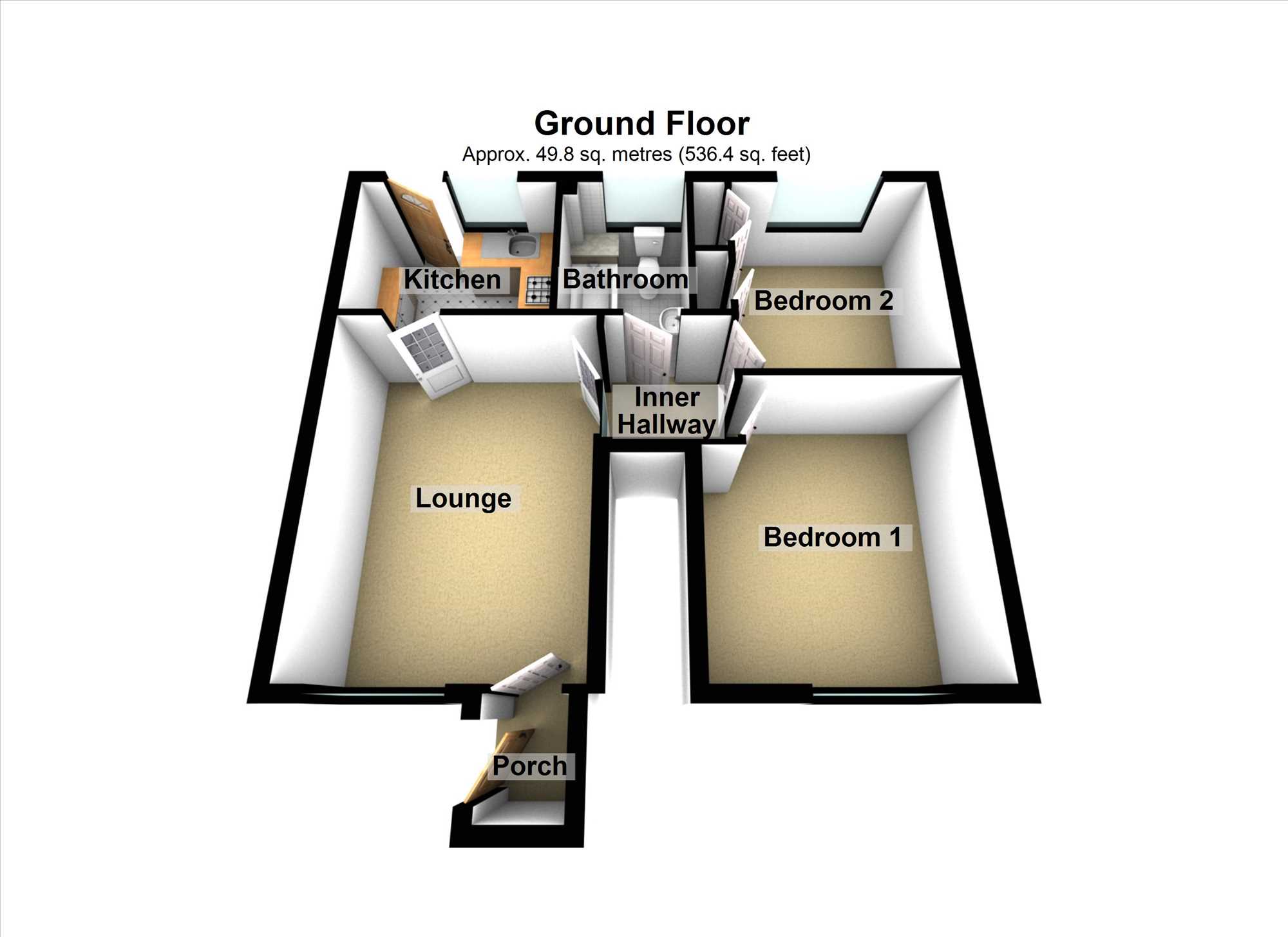 It features a good size lounge, kitchen, inner hall which serves two spacious bedrooms and bathroom.